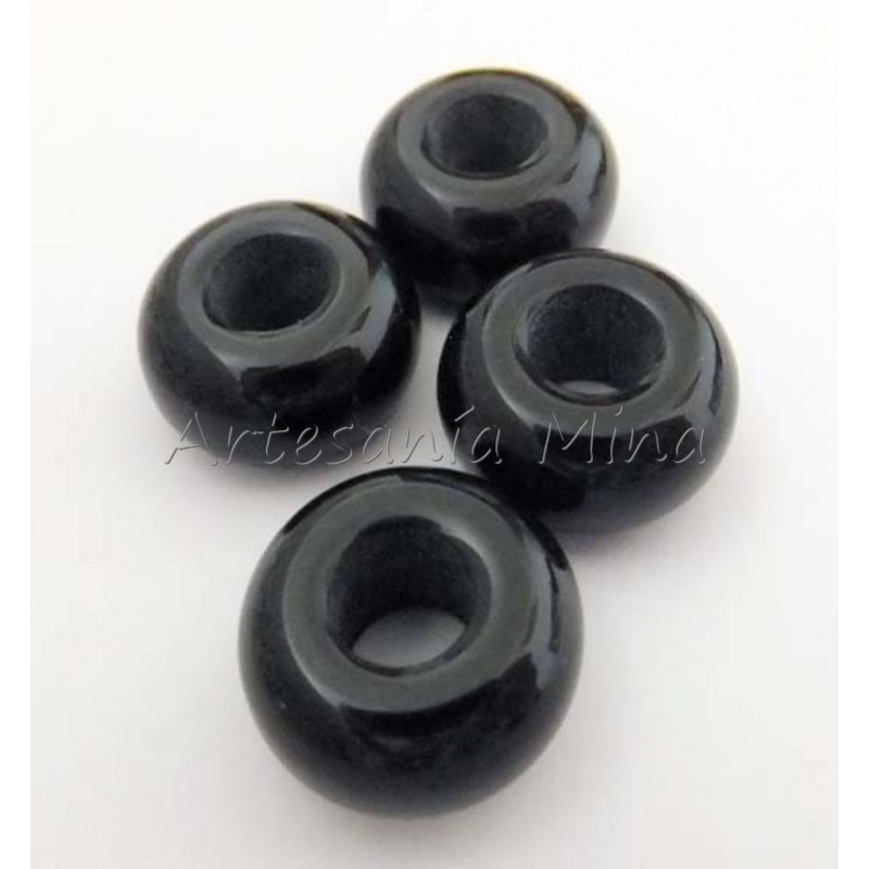 Cuenta rondel de resina 10 mm, color negro. Agujero 6 mm aprox.