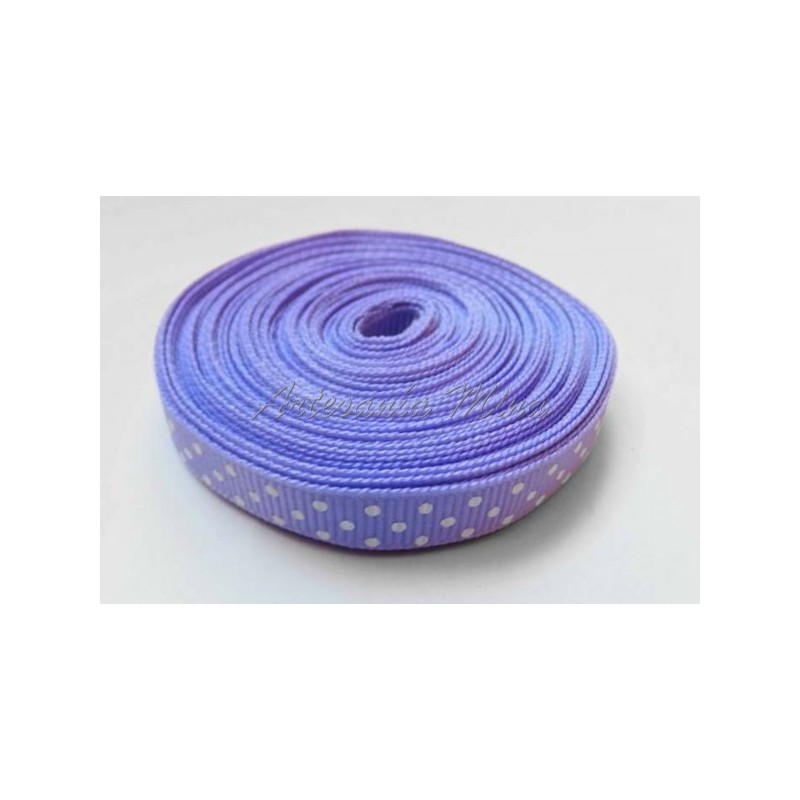 Cinta gross-grain 10 mm. de ancho, lila con lunares blancos.
