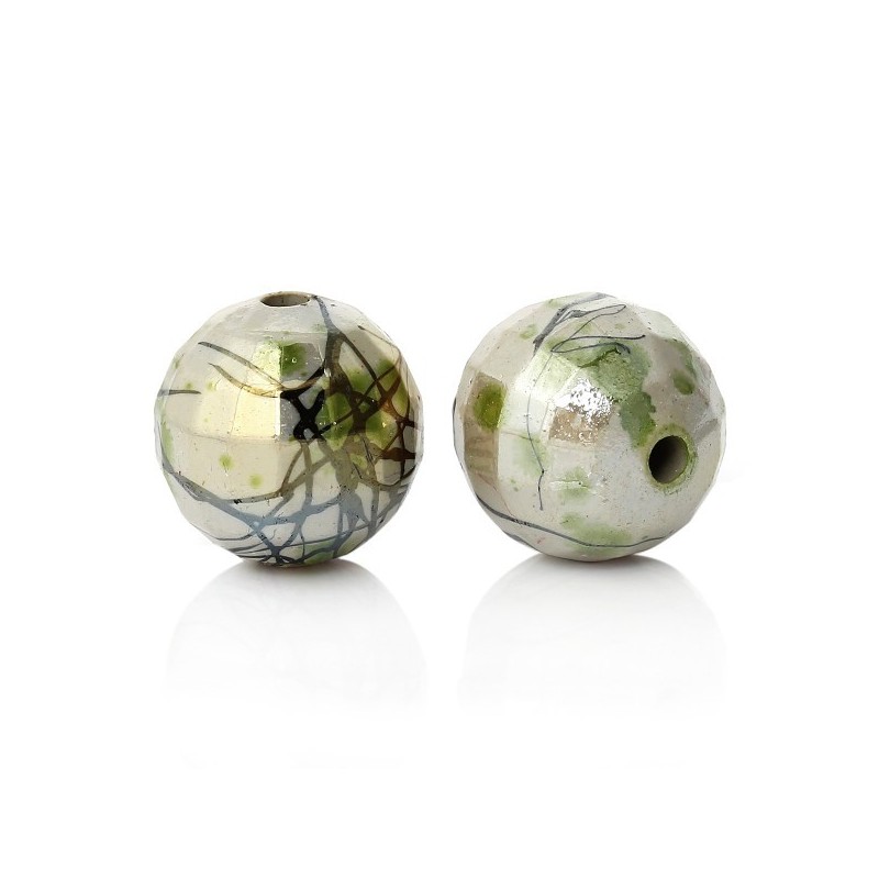 Bola acrílica 12 mm verde efecto AB con rayas, agujero 2,1 mm.