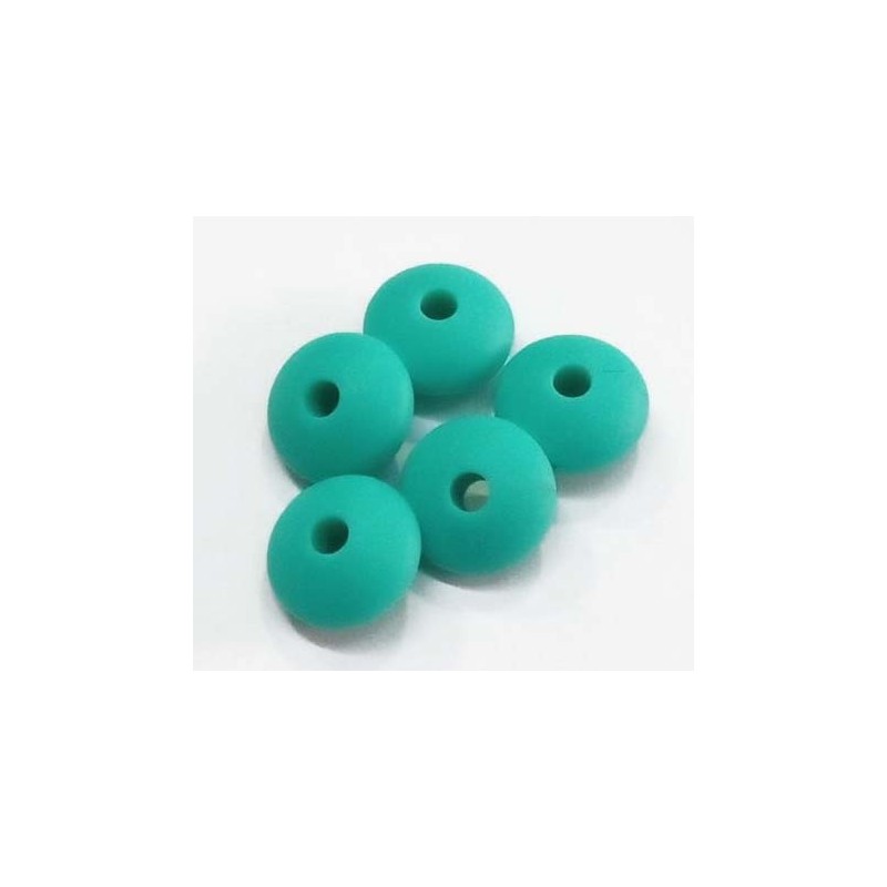 Lenteja de silicona color turquesa, medida 10 x 5 mm, agujero 2 mm.