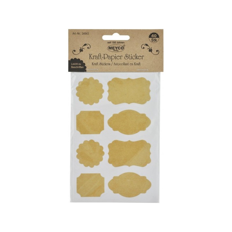 Etiqueta papel kraft adhesivo 4 formas marca Meyco (blister 40 unidades)