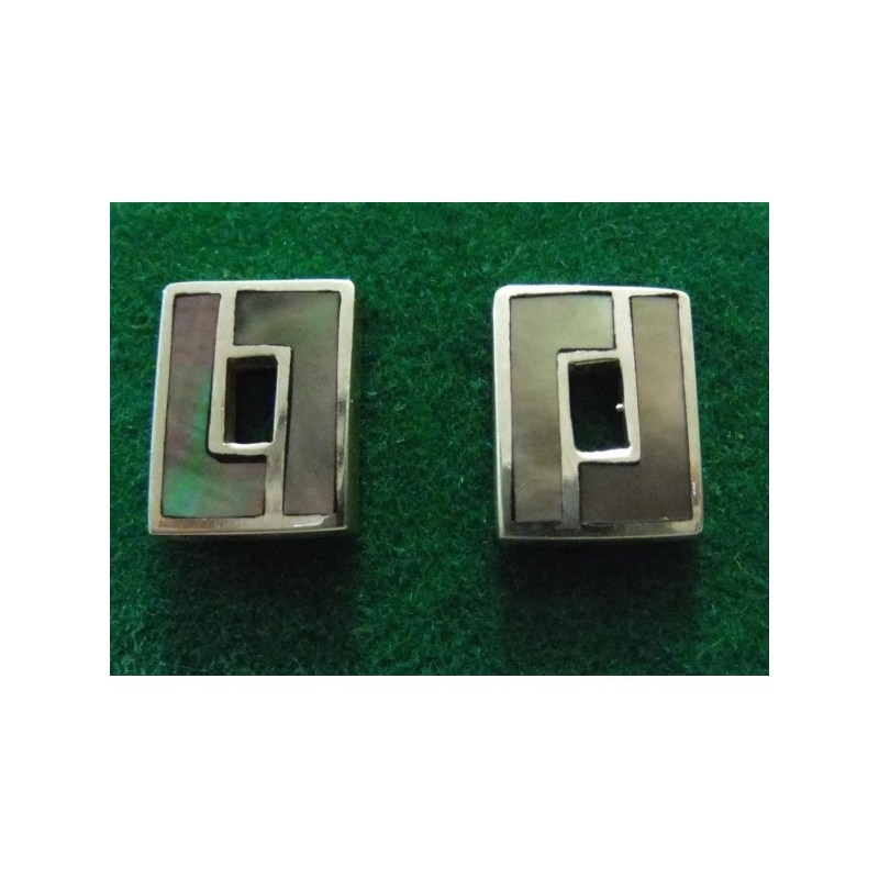 Pendientes en Plata Primera Ley y nácar negro, miden 9 x 12 mm, peso 3,3 gramos.