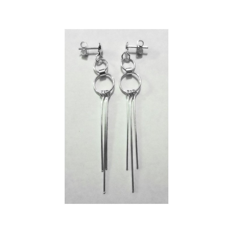 Pendientes en Plata Primera Ley, miden 68 mm. de largo, peso 3,8 gramos.